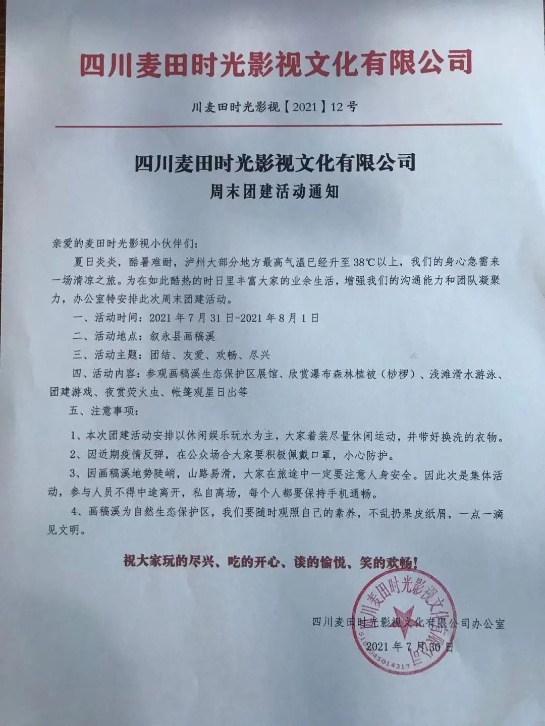 西南医科大学附属医院微电影 《前行中的核医人》 “大家明天都有时间吧?我们一起出去走一走!”呜呼!热得有些蔫吧的众人顿时精神振奋! 忙碌的麦田时光人儿终于迎来了第一个夏日团建——画稿溪之旅。